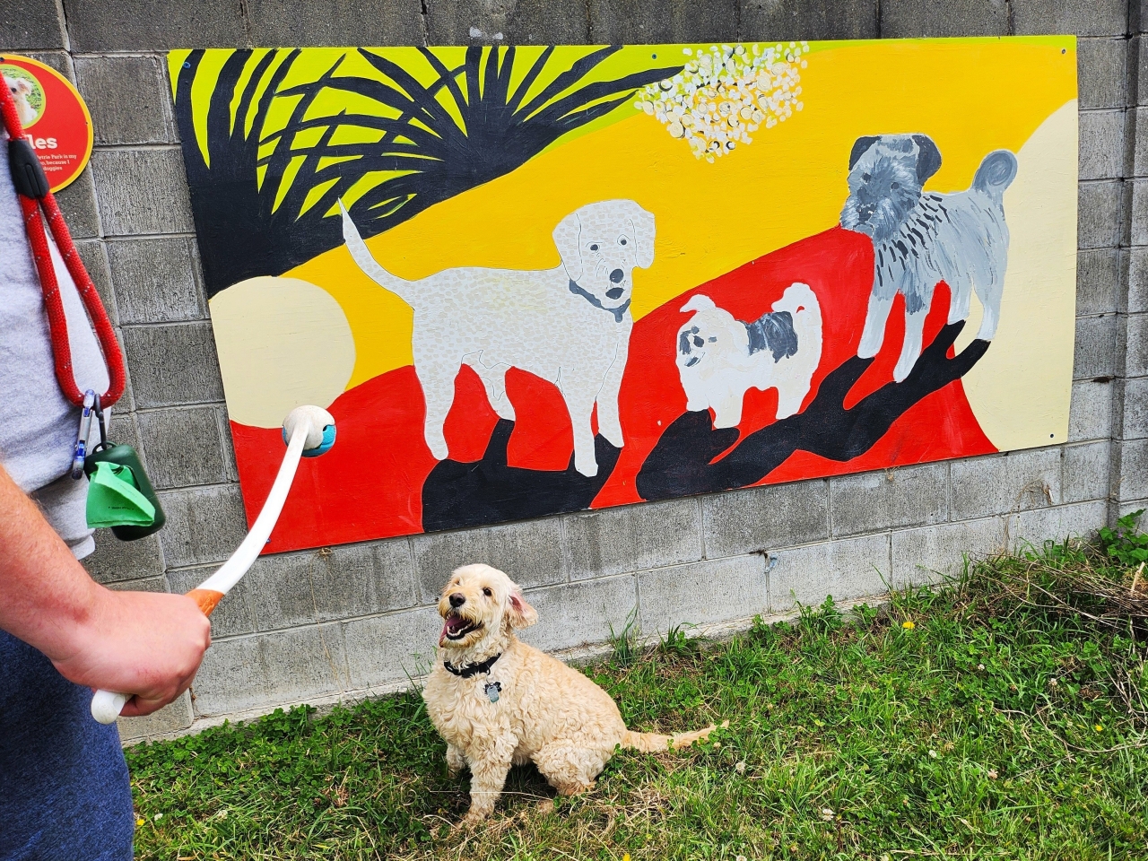 We also enjoyed seeing all of the murals we’ve worked alongside the community to create in the last year mounted along the perimeter walls…they look fantastic mounted on the walls around the park. Bridget Allen Environmental Art has done so well planning these and our landscape layout.